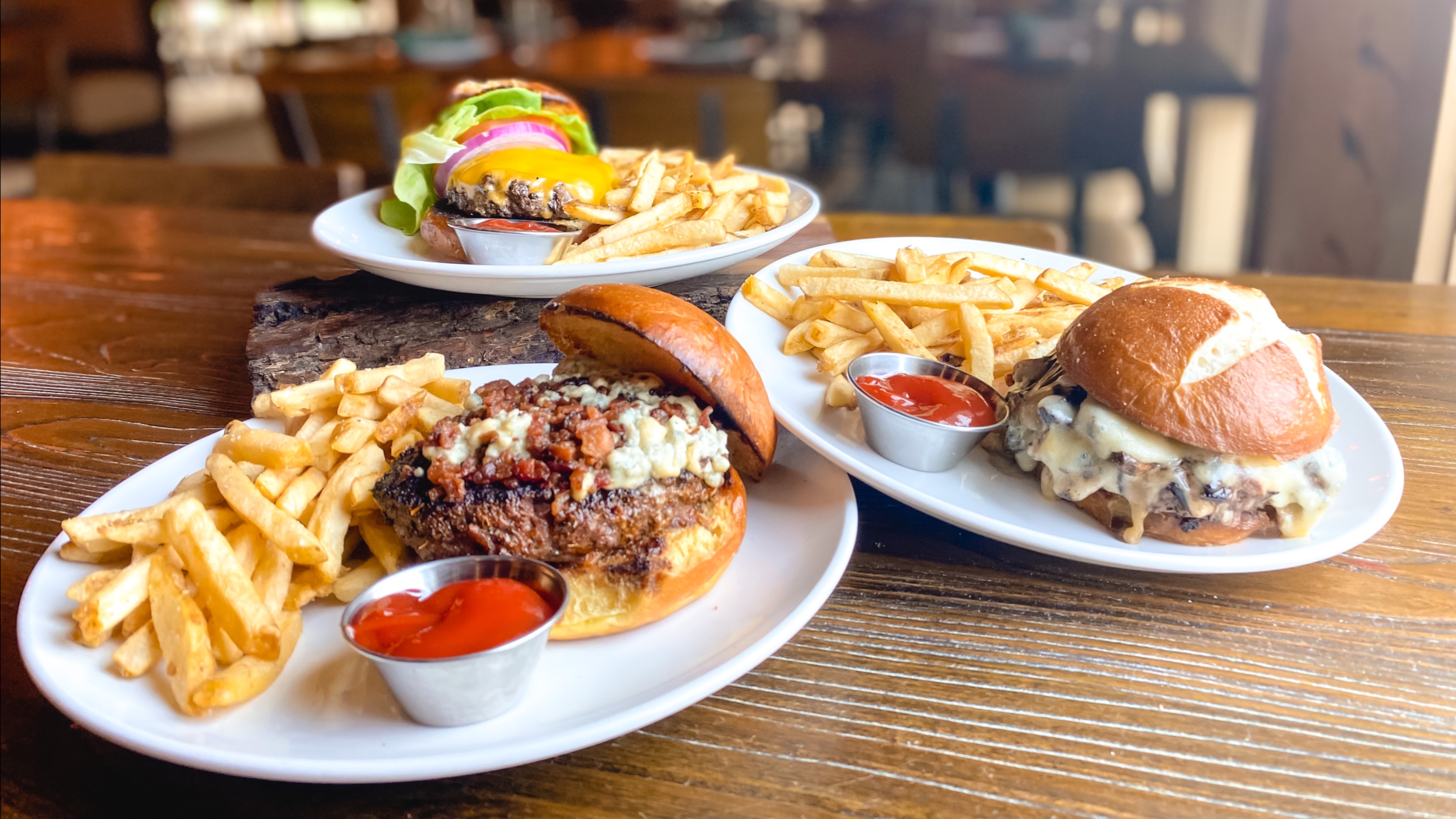 sautéed foraged mushrooms • swiss cheese • pretzel bun • garlic aioli • pines cut fries